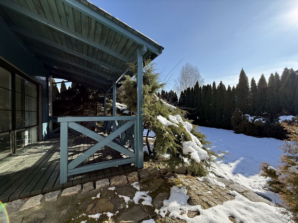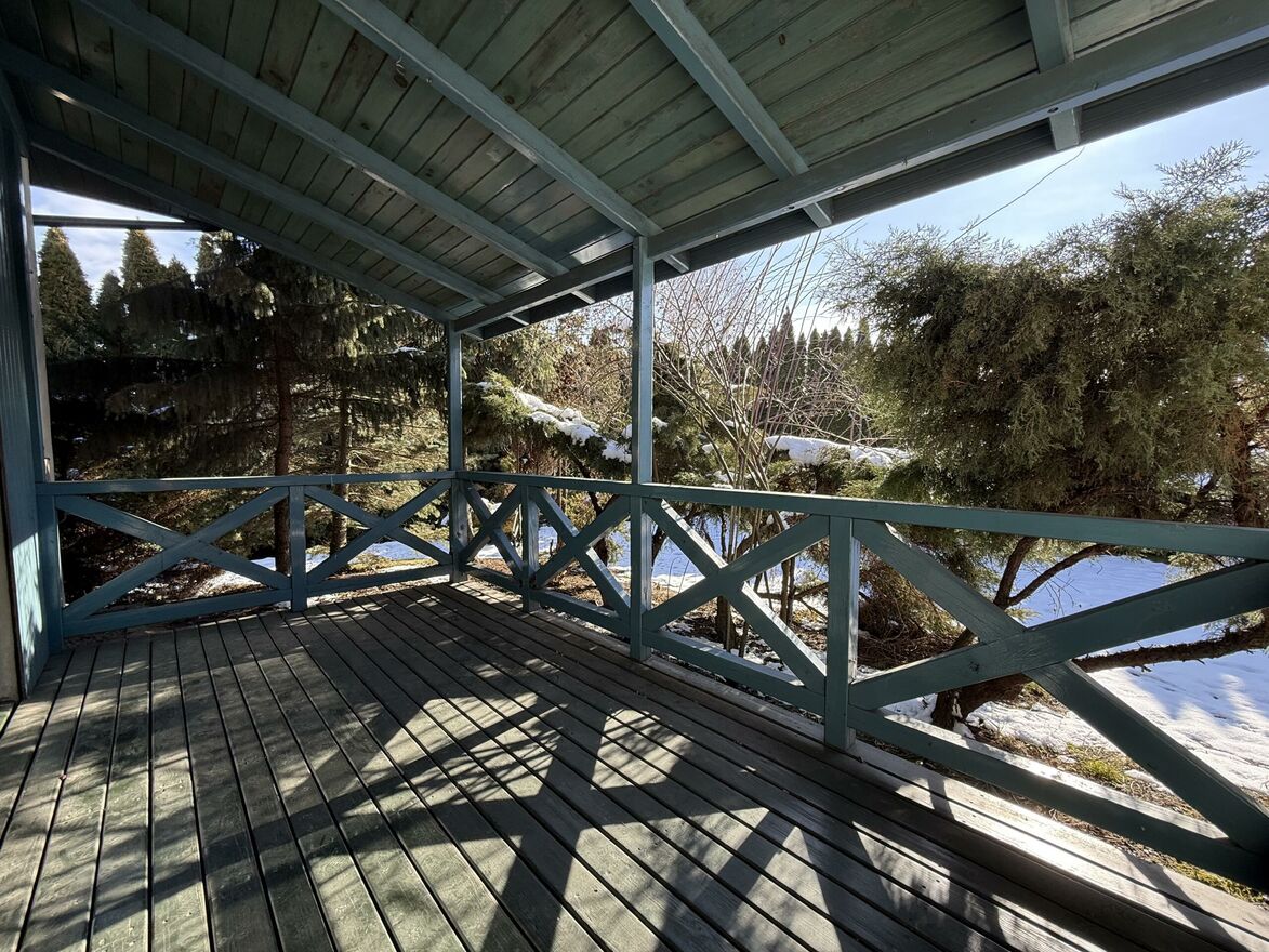 Sercem domu jest urokliwa weranda - idealne miejsce na poranna kawę, relaks z książką lub spotkanie z bliskimi niezależnie od pogody.